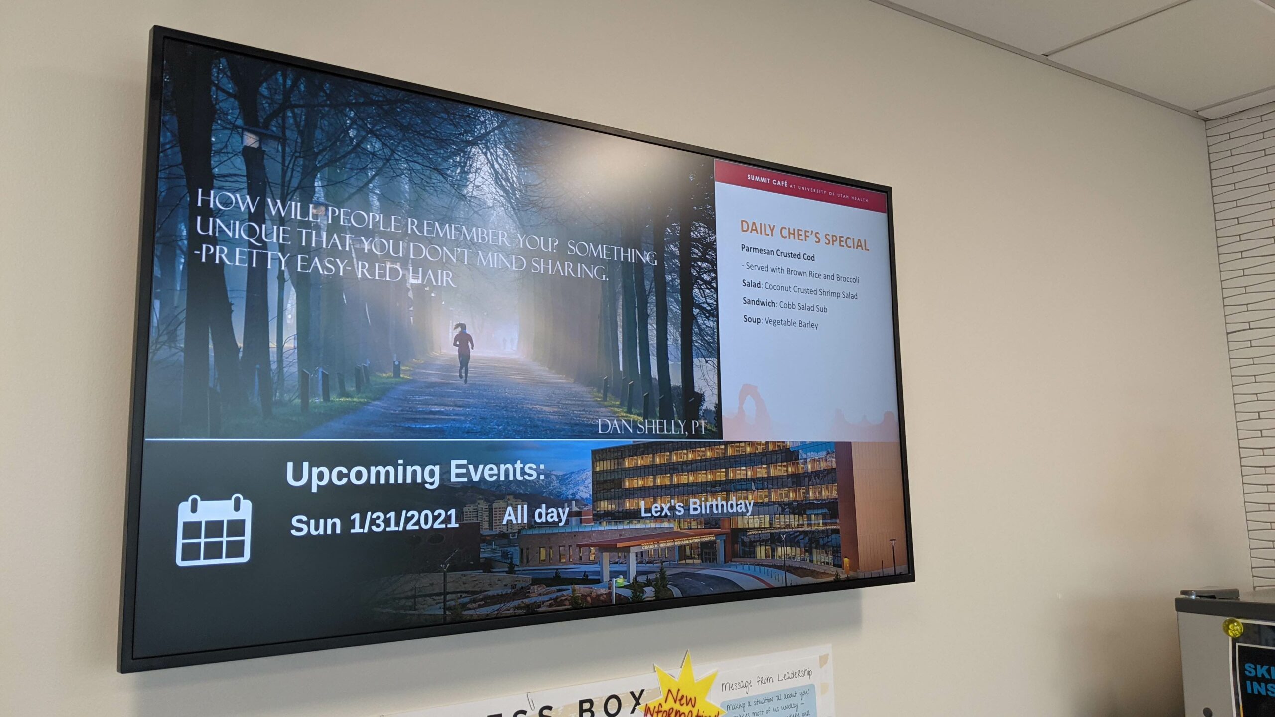 “We have found that our digital signage initiatives in other buildings have grown stale, and this is because the technical burden of creating content, updating software, and maintaining the network is too high,” said Elieson. “Our mission is to preserve, enhance and restore the quality of life for patients with severe and disabling conditions, and help them focus on the positive. That focus is diminished when we are weighed down by the burden of technology. We needed something that was easy to use and maintain, could help us reliably communicate important messages, and serve as a viable patient education platform.”